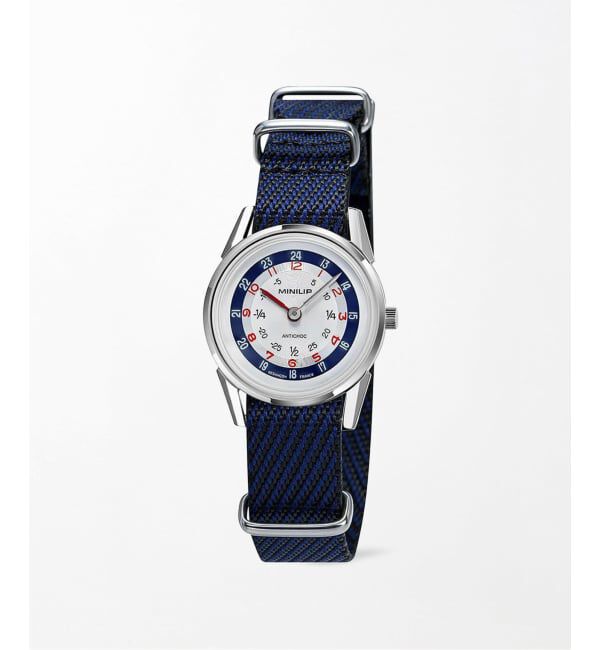 MINILIP 671971- デザイン29mmのポリッシュ仕上げ316Lステンレススチールケースには、独創的な3つの円で構成された時刻表示システムを搭載。ネイビーブルーの.. |