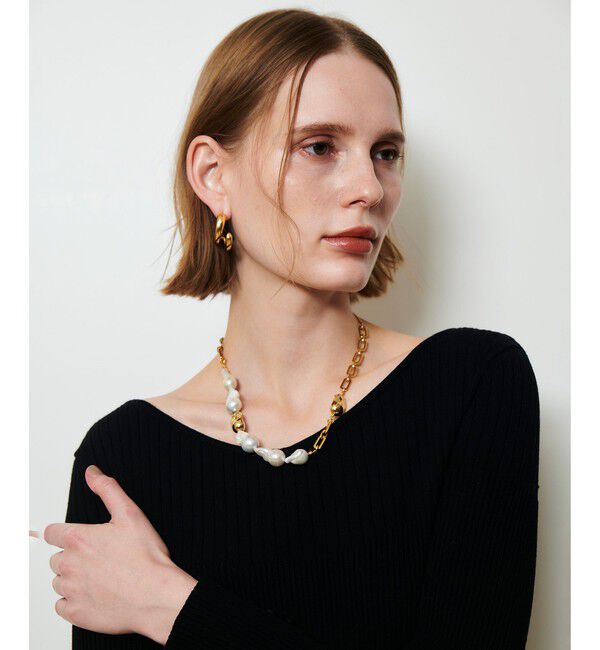 【allureville 2025 autumn&winter】メタルパーツと淡水パールを組み合わせたネックレス。上品な艶めきがスタイリングに華やかさを添えます。清涼感の.. |