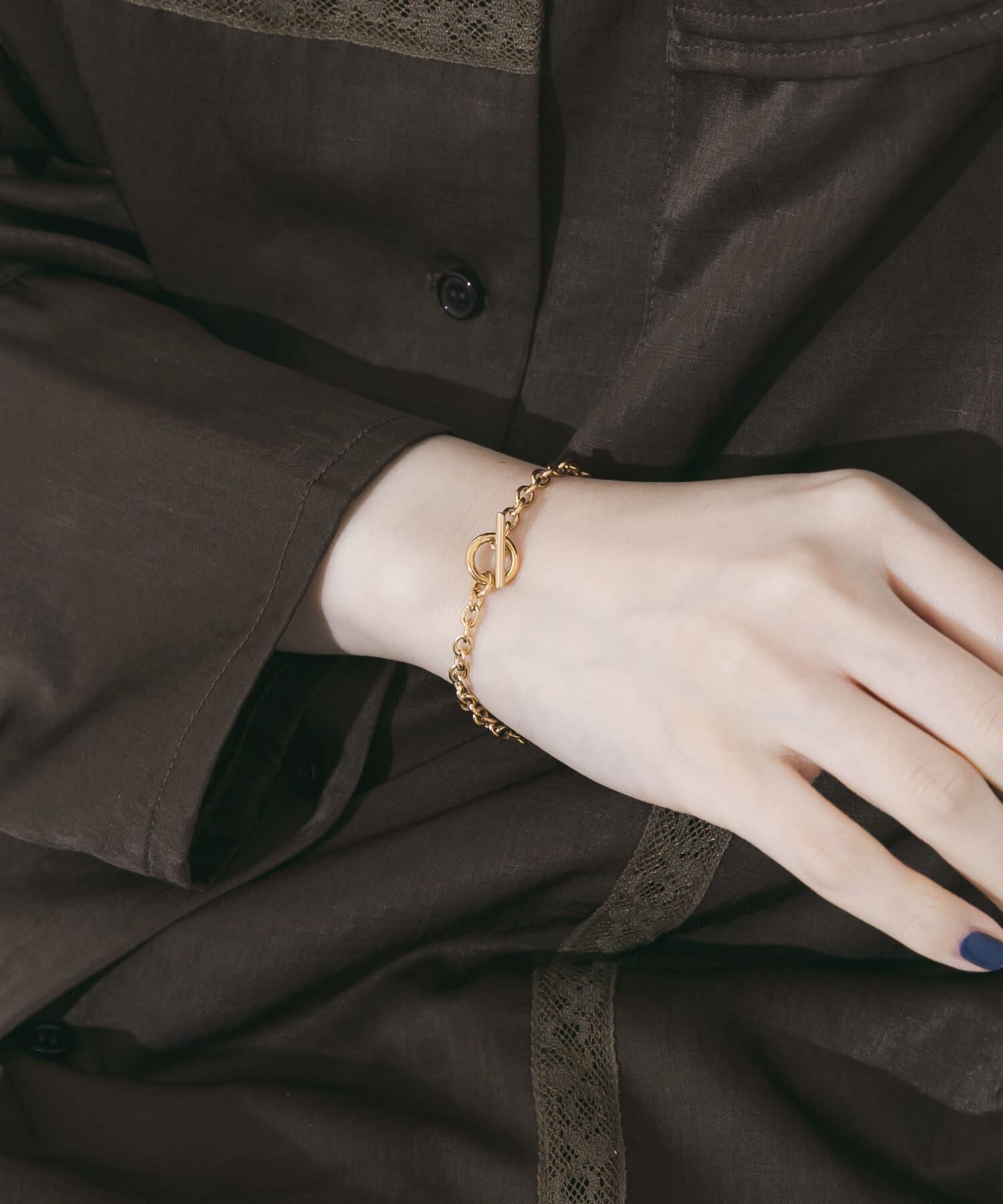 【手元に繊細なレイヤード感をプラス】●異なる2種類のチェーンを組み合わせ●華奢なラインが女性らしく洗練された手元に●肌に優しく錆びにくいサージカルステン.. |