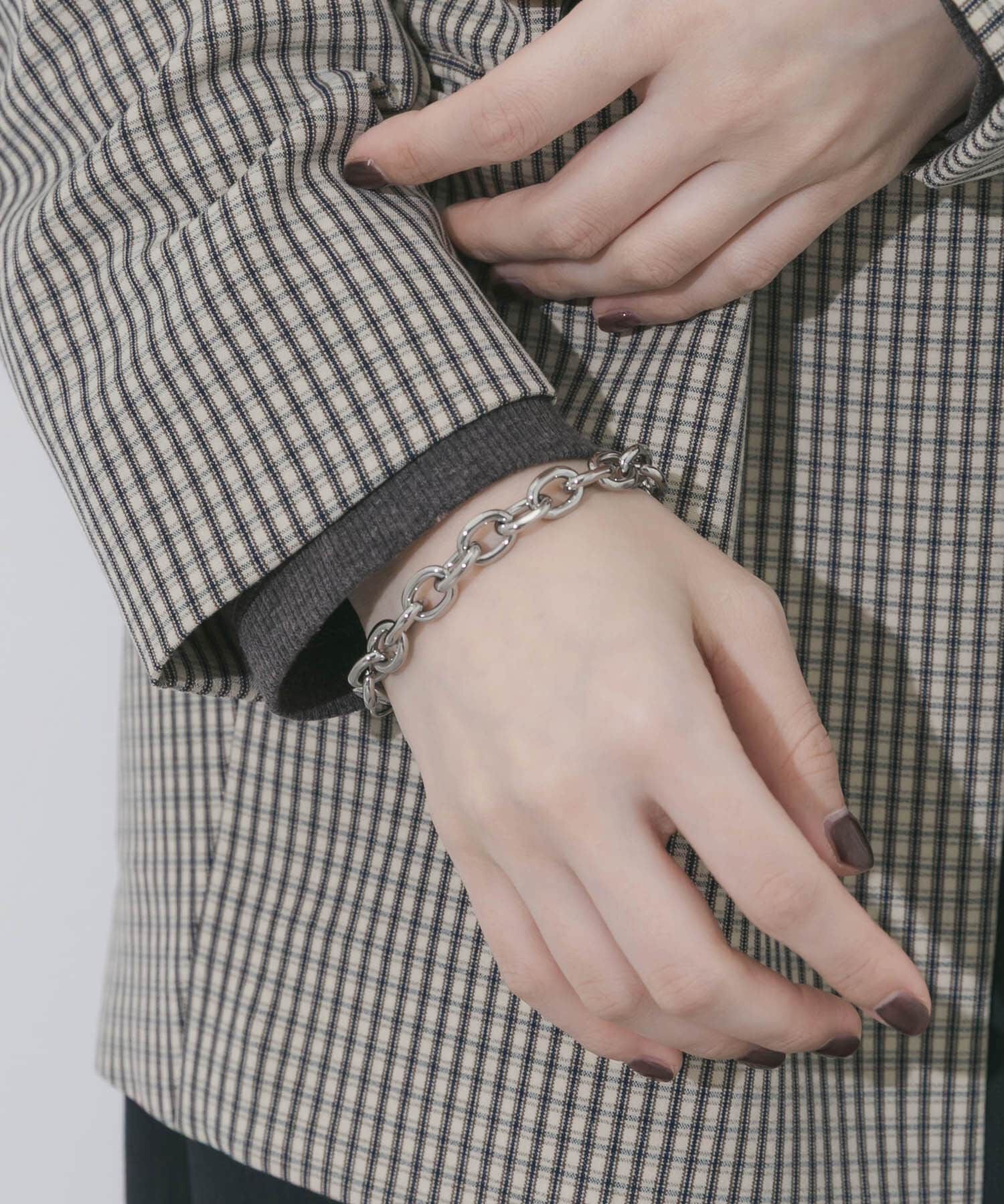 【都会的なスパイスを添えるボリュームブレスレット】●程よいボリューム感のオーバル型チェーン●無機質なメタルの光沢がクールで洗練された印象●肌に優しく錆.. |