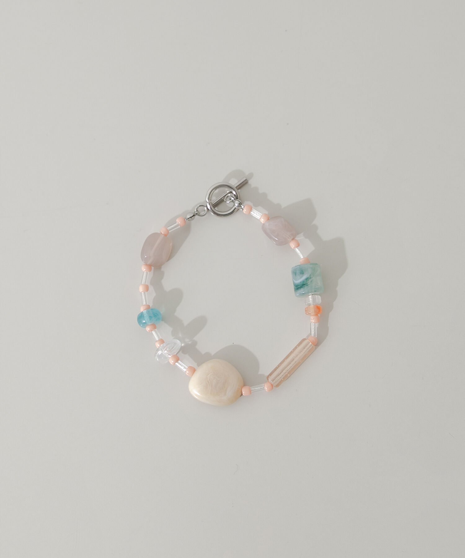 【プレイフルなアソートブレスレット】●形や色の異なるパーツを配した表情豊かなデザイン●肌なじみの良いミルキーカラーをベースに、爽やかなブルーがアクセン.. |