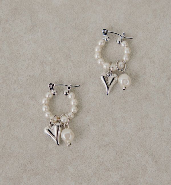 【チコ/Chico】 ハートモチーフ付きパールフープピアス