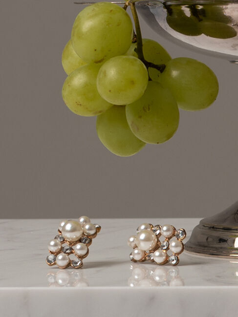 ブロック状に配置したパール調パーツが、耳元に立体感を添えるピアス。程よい存在感がありながら主張しすぎず、顔まわりを上品な印象にまとめます。シンプルな.. |