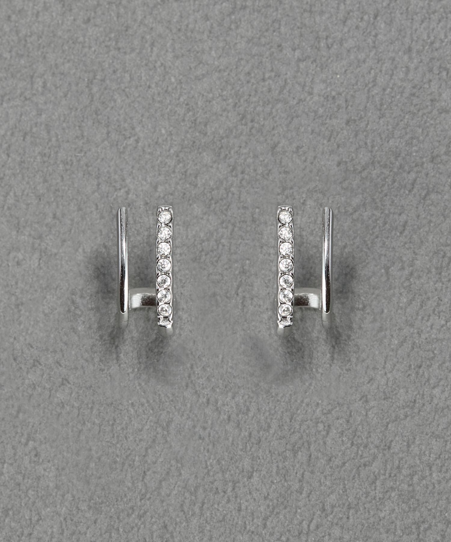 【フィービィー/Phoebe】 【金属アレルギー対応】メタル×ビジュー2ラインピアス シルバー/サージカルステンレス