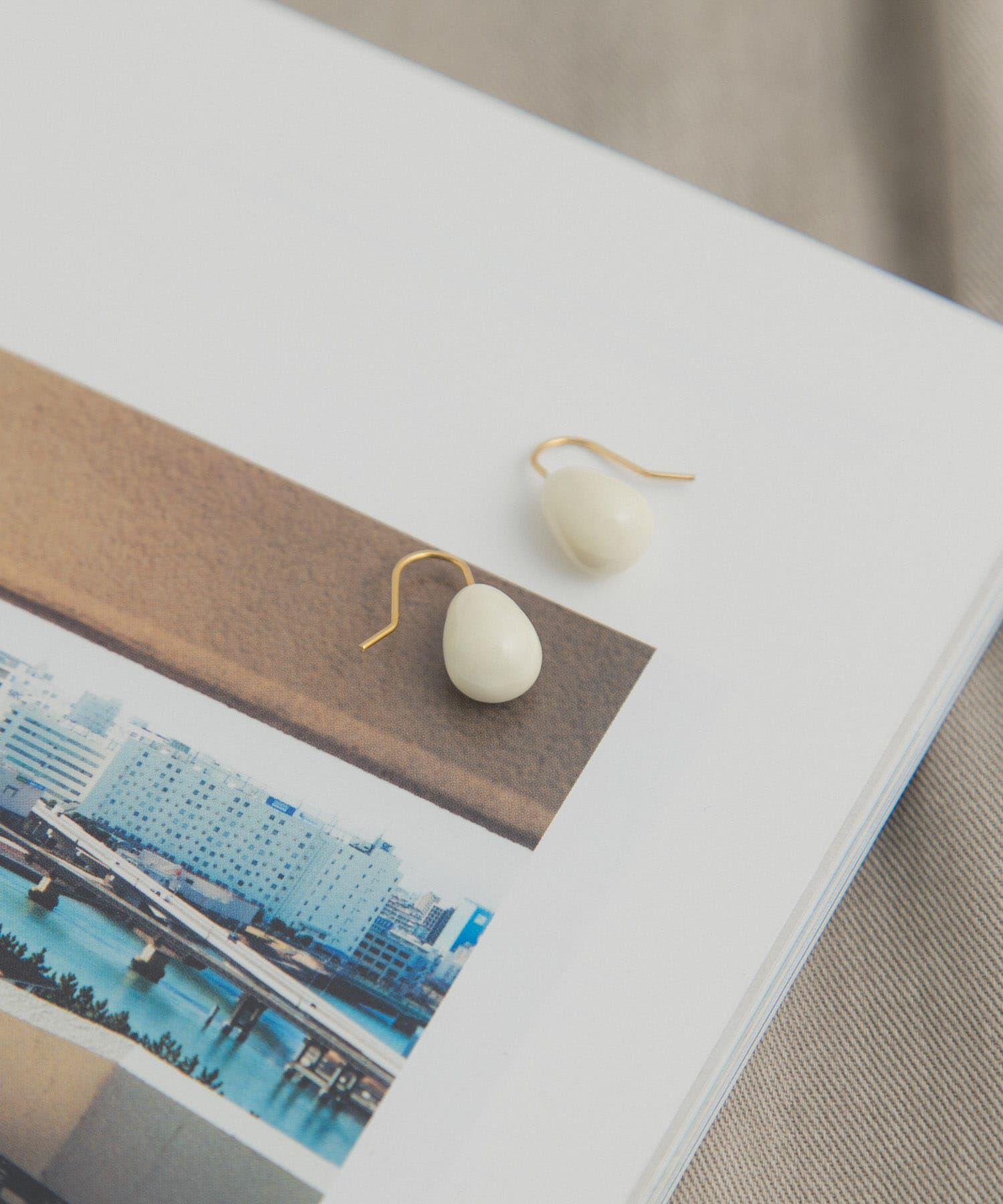 ぽてっとした丸みのあるモチーフが印象的なドロップピアス。立体的なフォルムが顔まわりに柔らかなニュアンスをプラスします。程よい存在感がありながらも、耳.. |