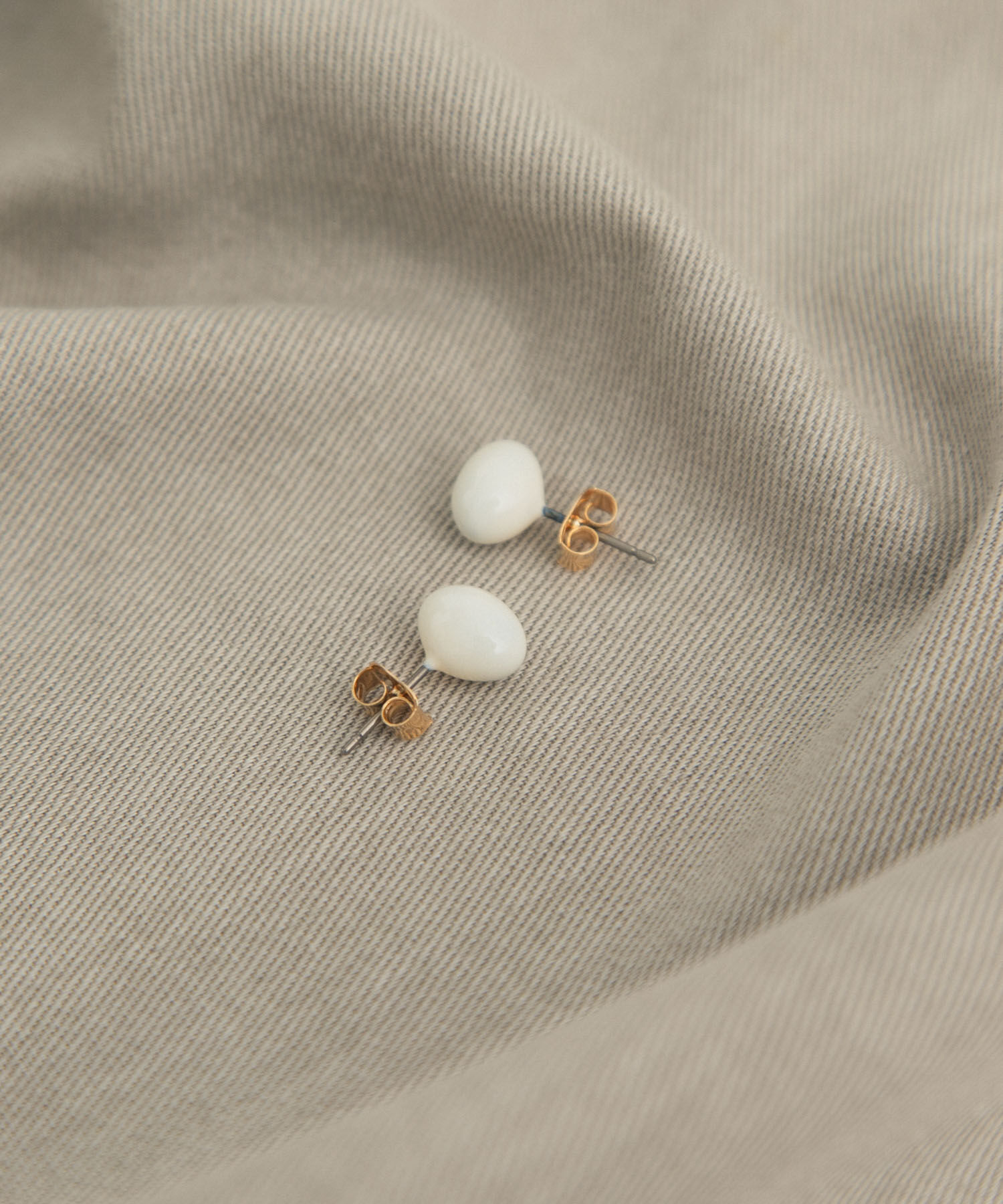 マットガラスとゴールドのコンビが上品なシェルピアス。動きのあるデザインが女性らしく、程よいボリューム感がお顔周りに華やかさをプラスします。 gren by M.. |