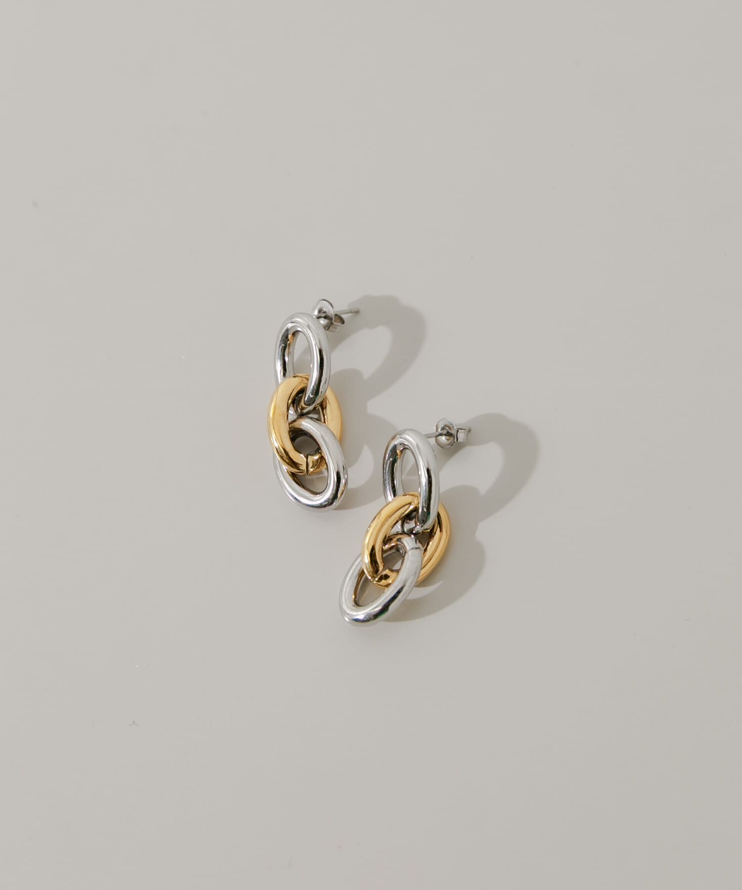 【洗練されたバイカラー】●シルバーとゴールドのリングを連ねたミックスカラーデザイン●耳元にモダンな奥行きを演出●肌に優しく錆びにくいサージカルステンレ.. |