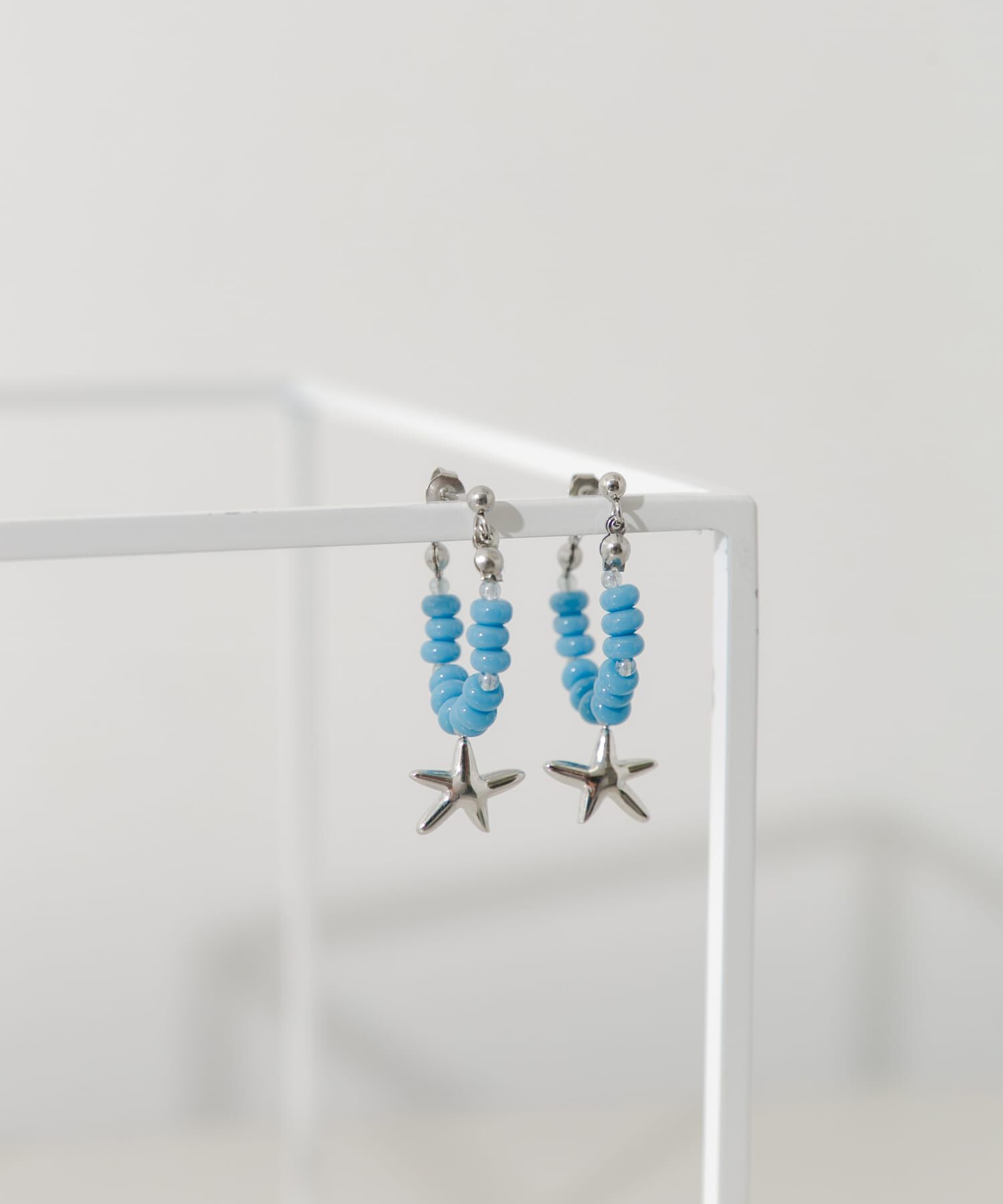 【爽やかなブルー×スターフィッシュ】●顔まわりを明るく見せる鮮やかなブルー●耳元で軽やかに揺れるスターフィッシュが、季節感をアップ●程よいボリュームのフ.. |