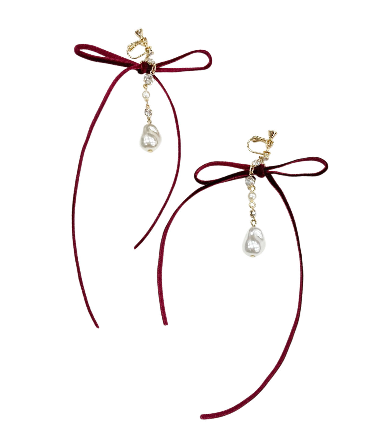【ウィルセレクション/WILLSELECTION】 ロングベロアリボンパールイヤリング