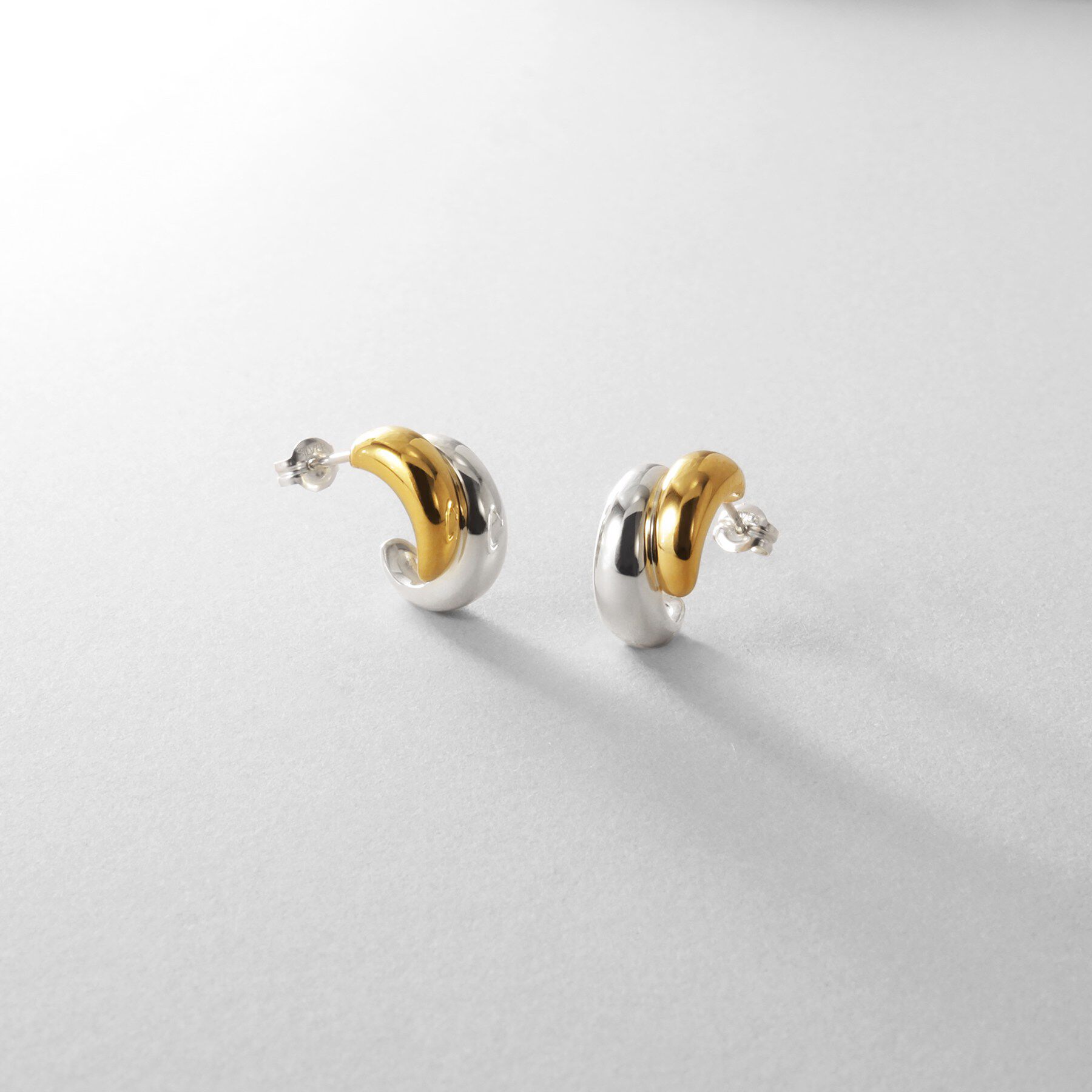 シルバーにゴールドコーティングを施したスクリューフープピアス。フープにひねりを加えたクロワッサンのようなフォルムは、シンプルながら存在感あるデザイン.. |