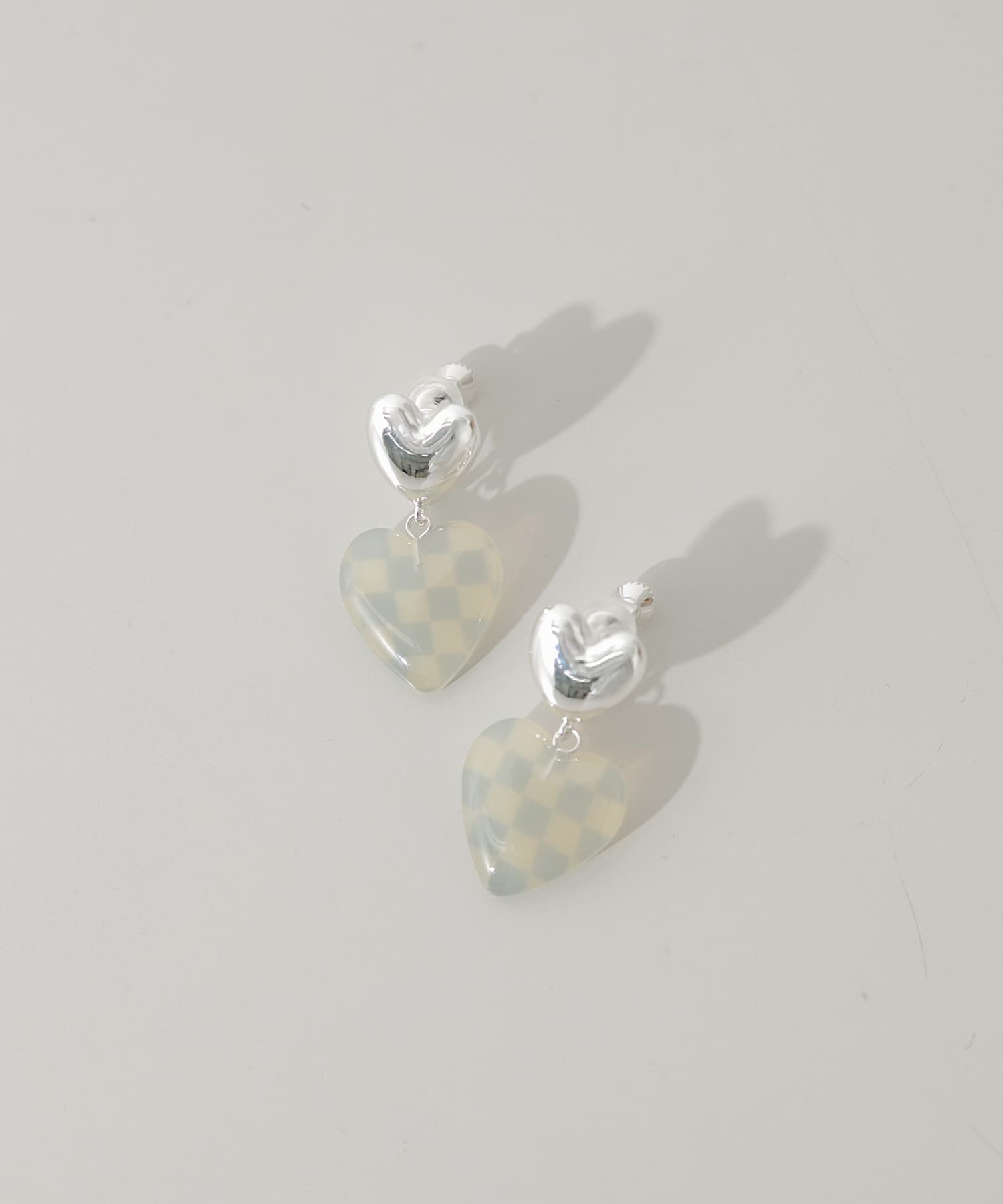 【大人可愛いを詰め込んだスウィングイヤリング】●ハートの中にチェック柄を閉じ込めたキャッチーなデザイン●甘くなりすぎず都会的な印象●耳元で揺れるシルエ.. |