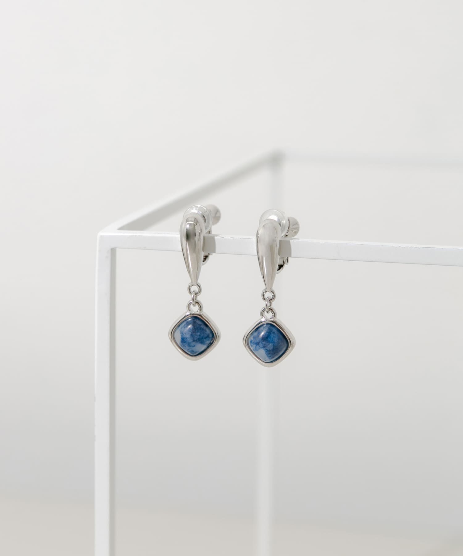 【天然石風のブルーが目を引く】●¥ブルーのスクエアパーツが耳元に彩りをプラス●縦のラインを強調するメタルパーツが顔まわりをスッキリとした印象に●洗練さ.. |