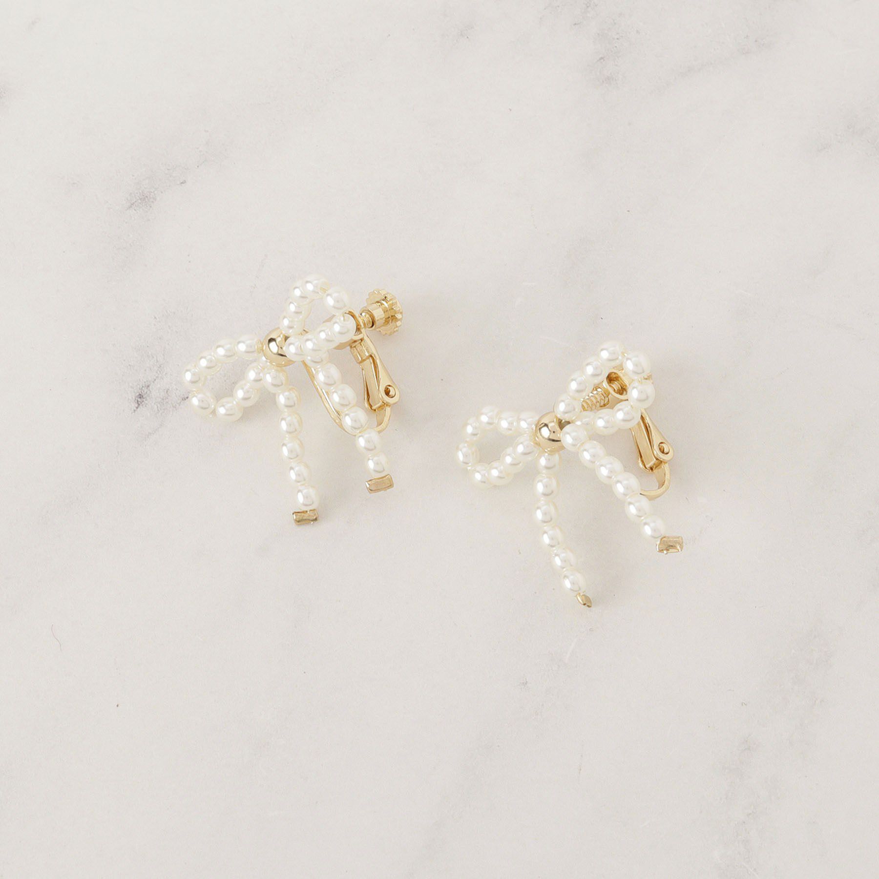【クチュール ブローチ/Couture brooch】 パール調リボンデザインイヤリング