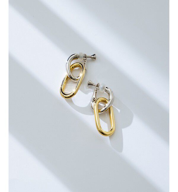 2026 Spring耳元に洗練された輝きを添える、バイカラーイヤリング■デザイン・素材ふたつの異なるデザインのリングが連なった、シンプルながらも存在感のあるイ.. |
