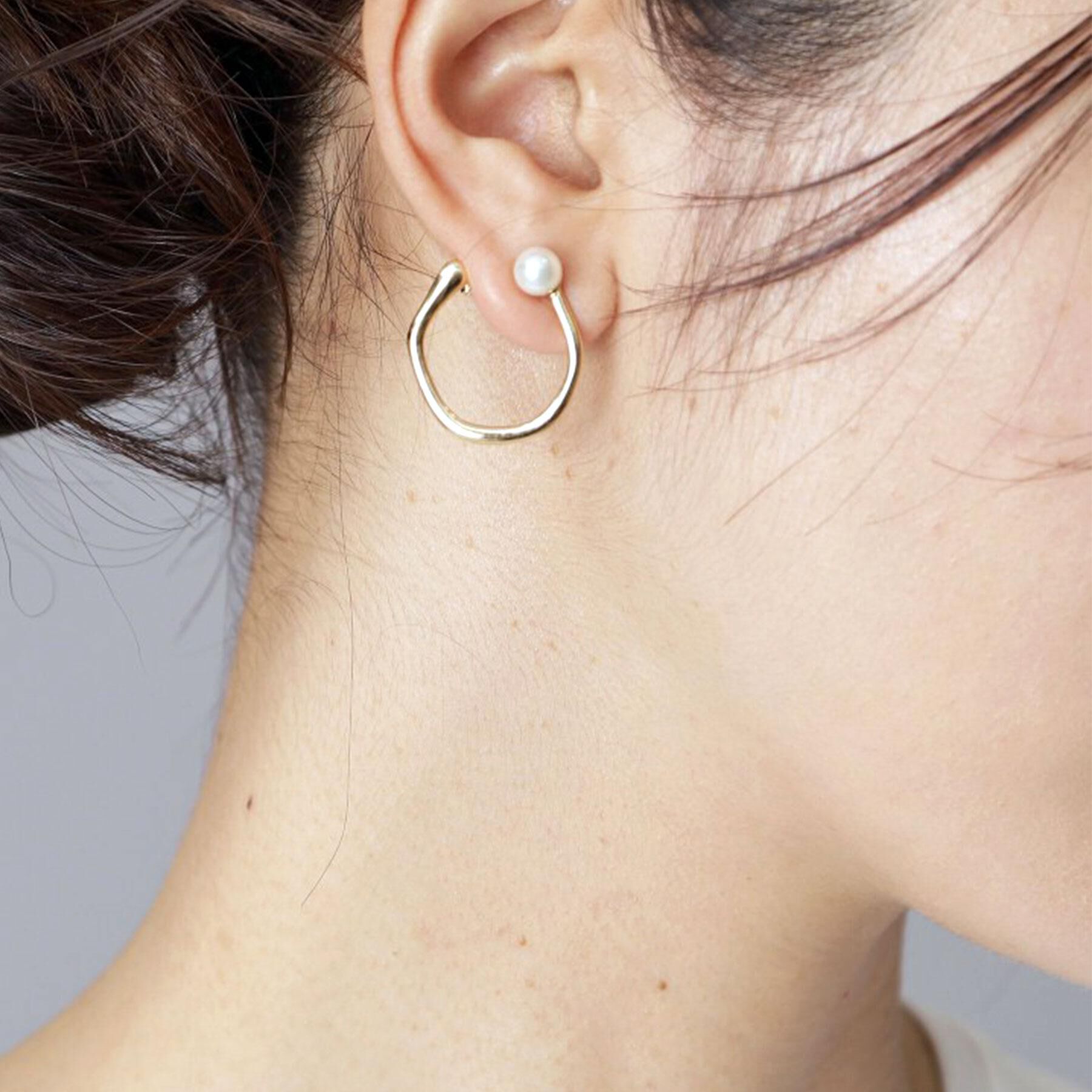 パールがポイントのデザイン。 シンプルなデザインながら、フープにねじりのディティールを加え 洗練された印象にしてくれます。 デイリーはもちろん特別な日.. |