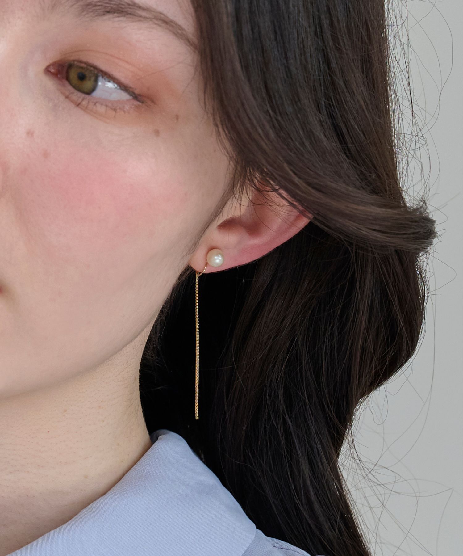 ひねりの効いた繊細なゴールドラインとカットチェーンの煌きが耳元を大人っぽく都会的に魅せます。イヤリング金具に引っ掛けているチェーンパーツを取り外すと.. |