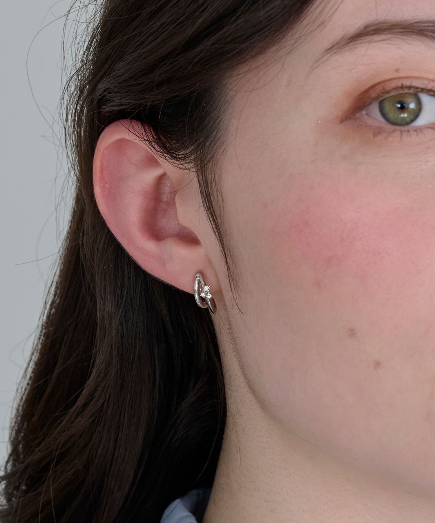 【フィービィー/Phoebe】 【痛くないシリーズ/金属アレルギー対応】ダブルラインビジューライトフィットイヤリング シルバー