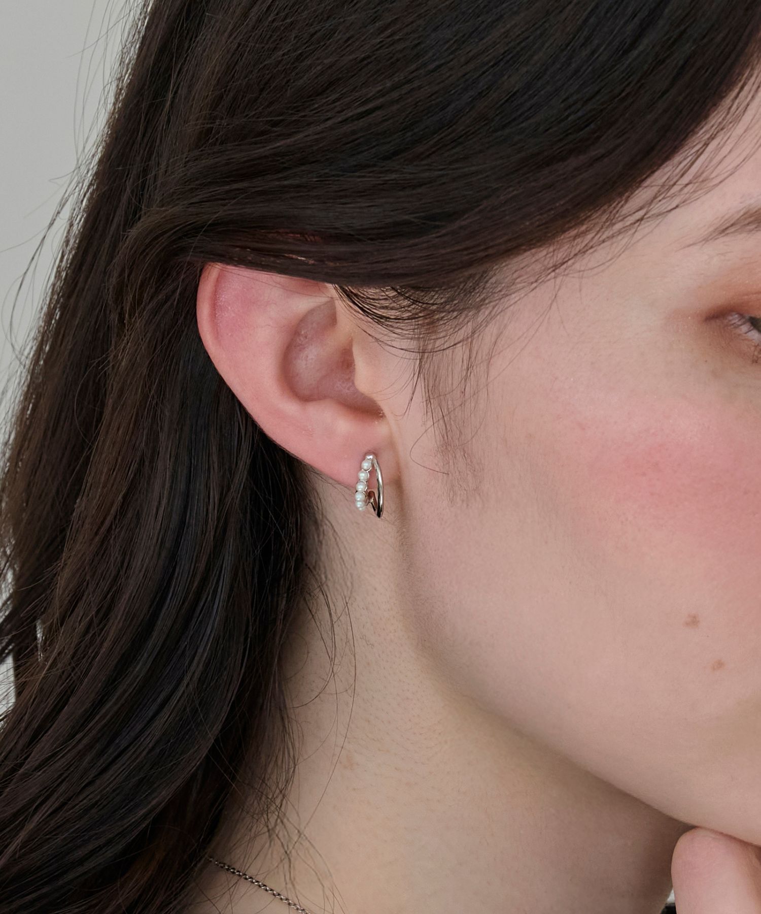 【フィービィー/Phoebe】 【痛くないシリーズ/アレルギー対応】プチパールダブルフープライトフィットイヤリング シルバー