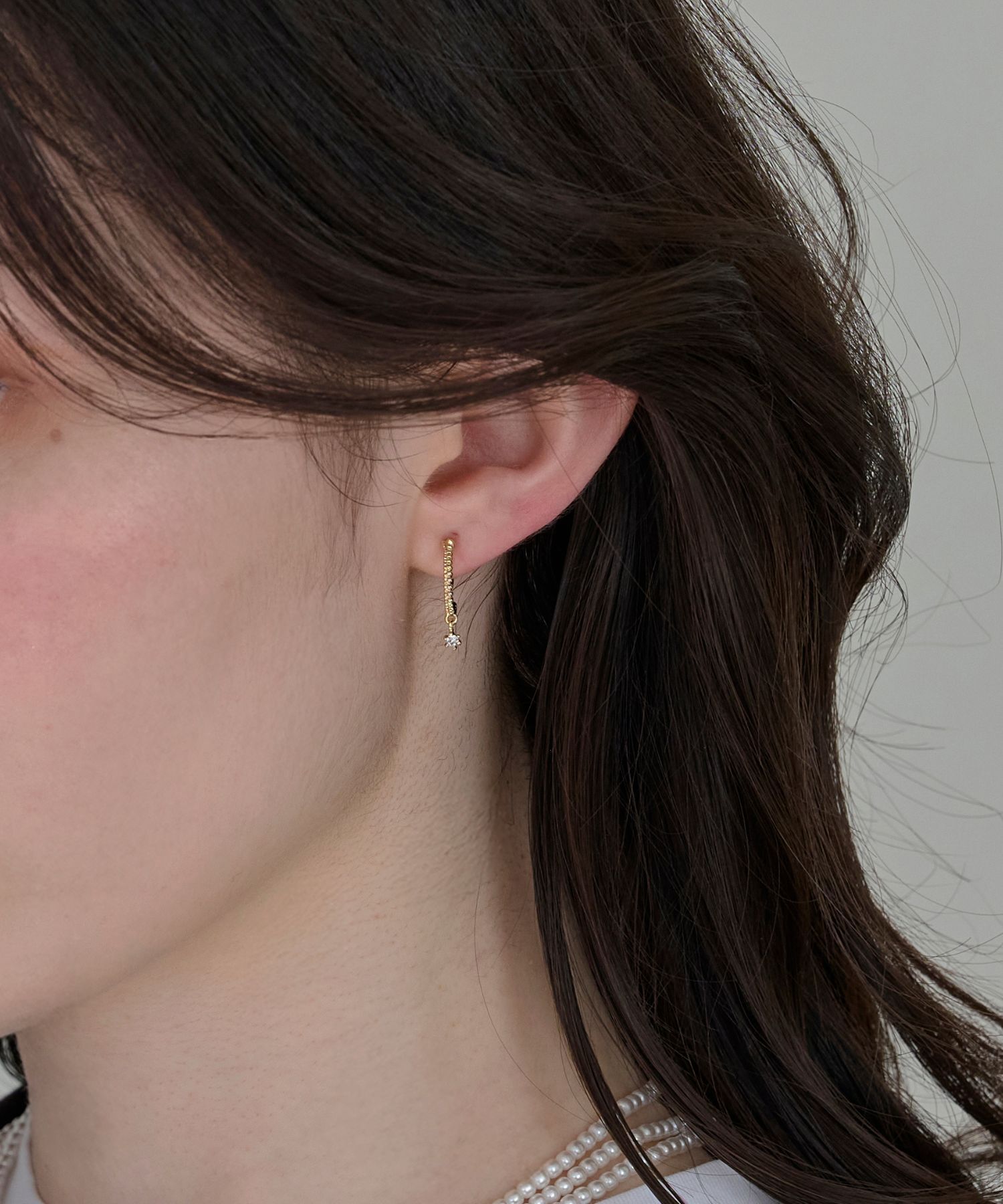 つや感のあるラインと、テクスチャーを施したラインがそれぞれ違った輝きを放ちます。ピアスのようなルックスを楽しめる、ひとつは持っておきたいフープイヤリ.. |