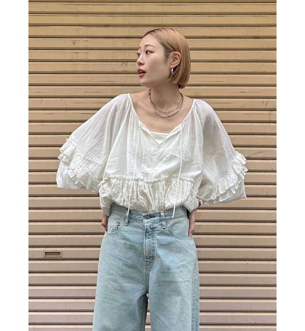 たっぷりとボリューム感のあるブラウス ・Summer LOOKはコチラ ■デザイン 袖部分にはフリルデザインを施し、さらにビーズのハンド刺繍がアクセントに。 身.. |