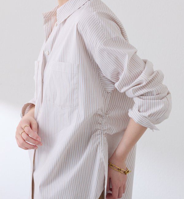 シーズンレスで着回せるアレンジシャツ ※ネイビーのみ無地 【POINT】 ・サイドのウエスト部分に紐を入れてドロストを絞ればスタイルアップも叶います◎ ・一見.. |