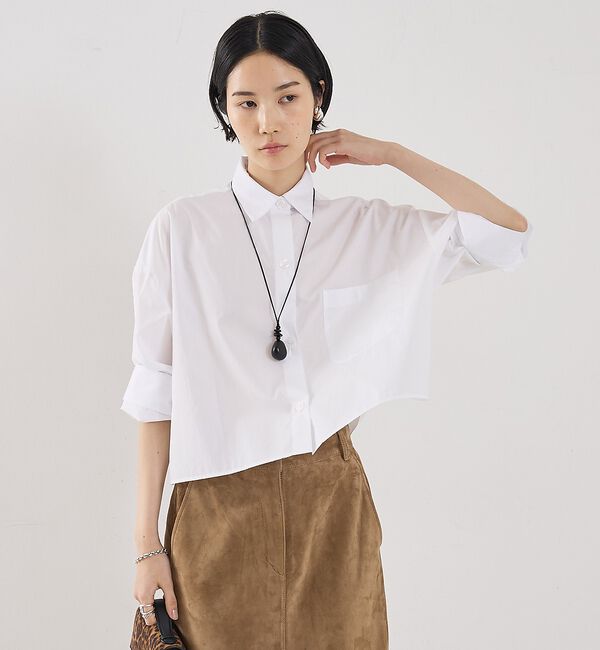 クロップ丈のボックスシルエットシャツ。TWPのブランドシグネチャーであるダブルロールボタンカフスが特徴的。クロップ丈のシャツはロングスカートとのスタイ.. |