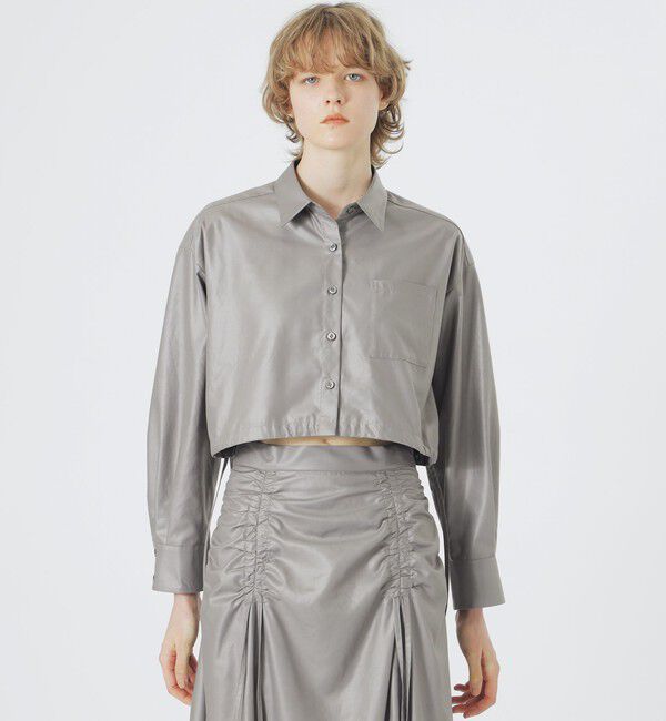 艶感が魅力のクロップドシャツ【素材】天然タッチでしなやかな反発感とドレープ性を持つポリエステル素材。表面に光沢加工を施し、オイルを塗り込んだようなヴ.. |