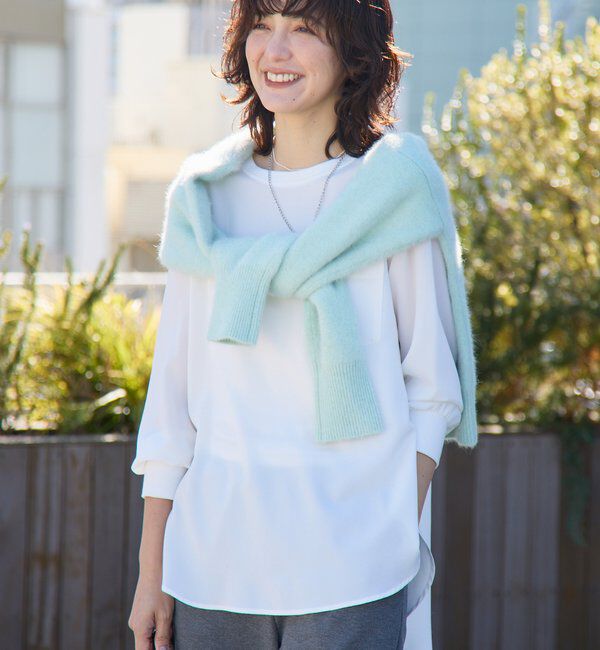 *Detail*高いストレッチ性とドレープ感が特徴なブラウス。接触冷感とUVカット素材なのも嬉しいポイント。後ろ身頃にフレアがでるように仕上げました。*Coordin.. |