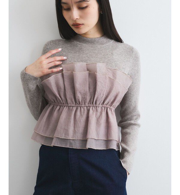 【グローブ/grove】 【石川梨華さん着用】【洗える】バックリブ切替ニット