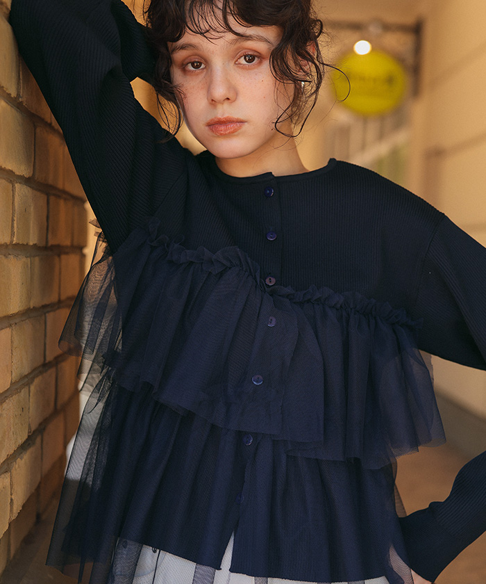 ティアードフリルニットカーディガン/トップス