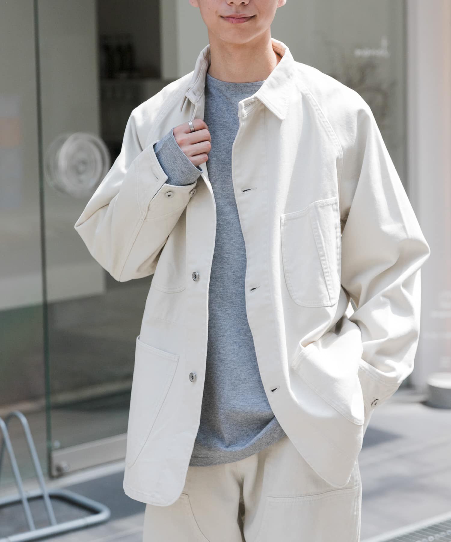 王道カジュアルなスタイリングに欠かせないカバーオールをご用意。微起毛させたコットンツイルを使用し縫製後に製品染めすることで古着のようなフェードしたよ.. |