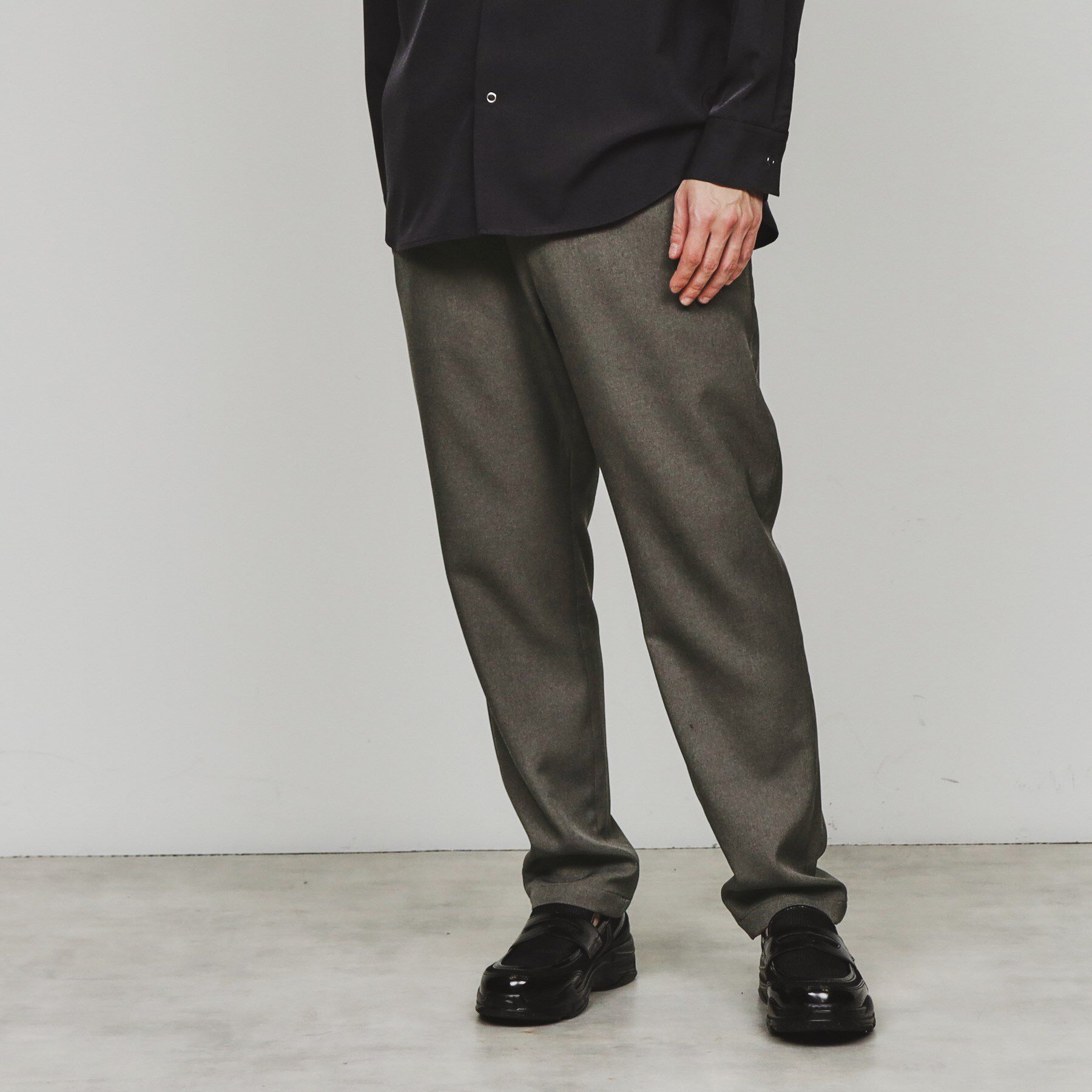 【素材】梳毛調のウールライク素材を使用しています。綺麗めで上品でな表面感が特徴です。【デザイン】裾にかけてゆるやかなテーパードを施した、細身ですっき.. |