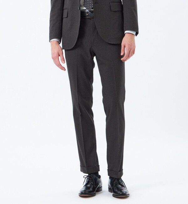 抜群のストレッチ性と上品なウール調の風合いを併せ持つセットアップトラウザーズ【デザイン】定番のスリムフィットモデル(ヒザ裏付き)。すっきりとしたテー.. |