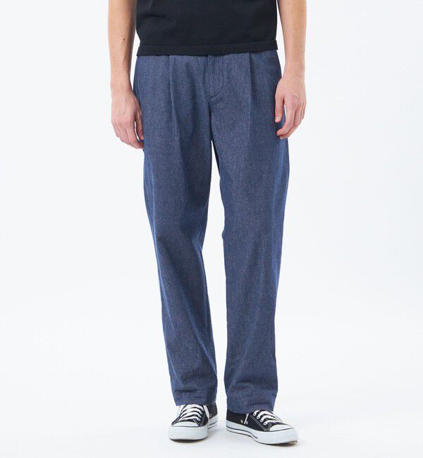 落ち着いた印象でコーディネートしやすいワンタックテーパードデニム【デザイン】シルエットはワイドワンタックチノーズに合わせ、裾に向けて程良くテイパード.. |