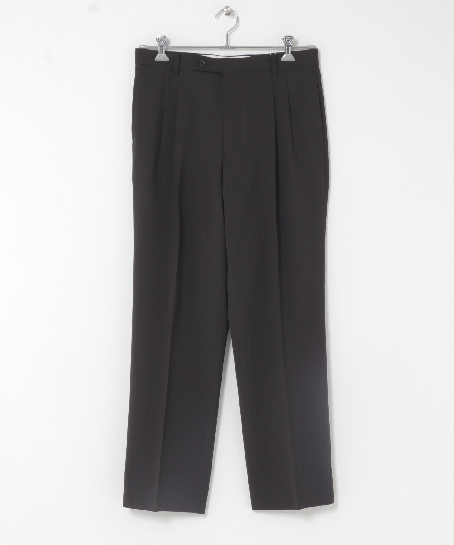 ポリエステルながらウールのような見え方が特徴の生地を使用したパンツです。フロントは2タック、裾はシングル仕様。ウエストにはあえてゴムを入れずにきれい.. |
