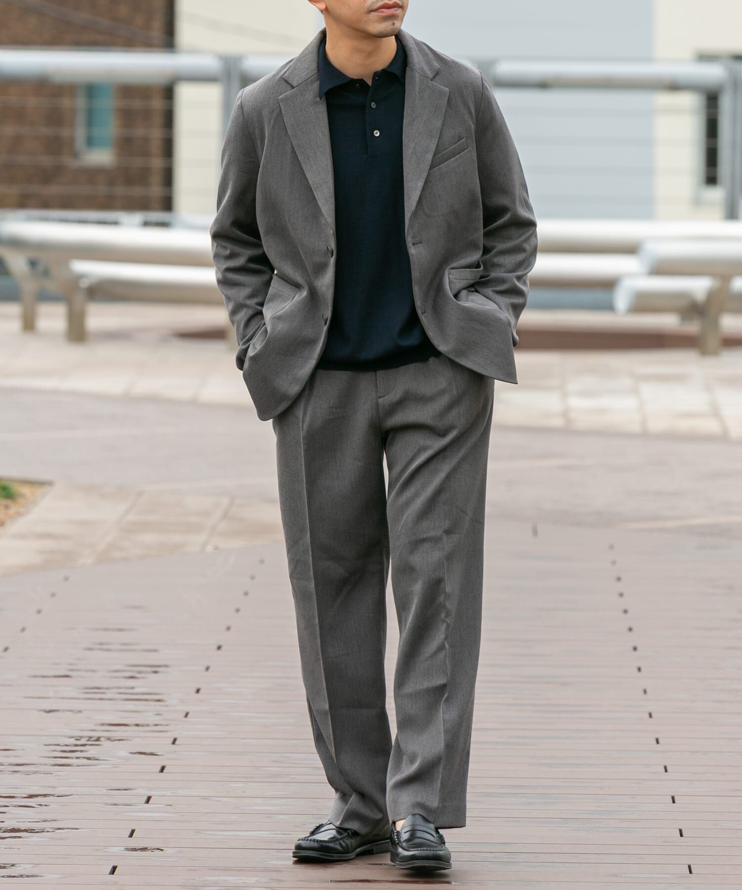 【場面を選ばないスマートルックな大人セットアップ】しっかりとした厚みと、起毛感がありながらさらりとした肌触りのウールライク素材を使用した毎シーズンご.. |