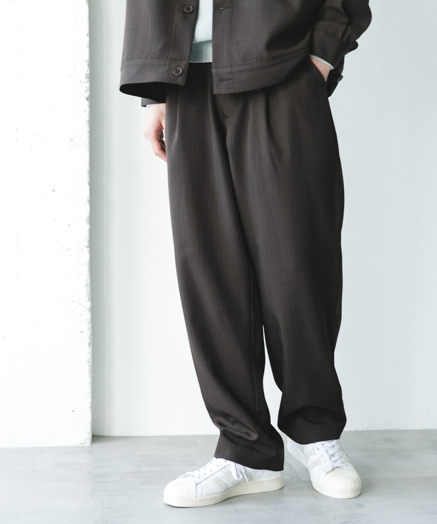 【アーバンリサーチ/URBAN RESEARCH】 ストレッチヘリンボーン1タックワイドスラックス