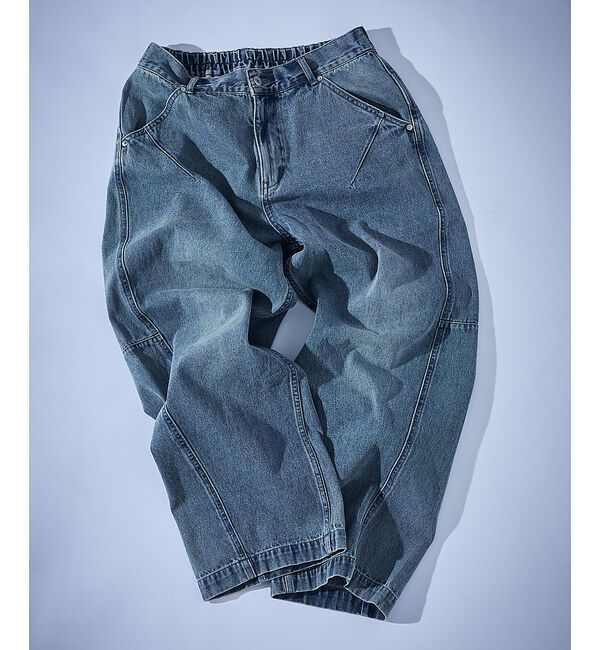 カラーも経年変化によるフェードを再現。製品にてフェード加工を施しています。ゆったりとしたフィッティングのバギースタイルのデニムパンツ。足元に生地がた.. |