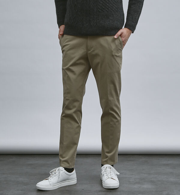 【素材】コットンらしいハリコシのある綿素材。細かいカルゼ組織が存在感を演出します。【デザイン】きれいなスラックスとチノパンツのイイトコ取りをしたアイ.. |