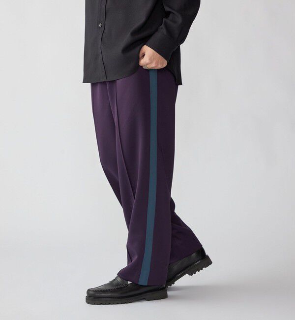 スラックスと同様の製法でつくったSHIPSが提案するラインジャージパンツ。【素材特性】強燃で織り上げたポリエステルのカットソー生地を使用。ほど良い光沢と.. |
