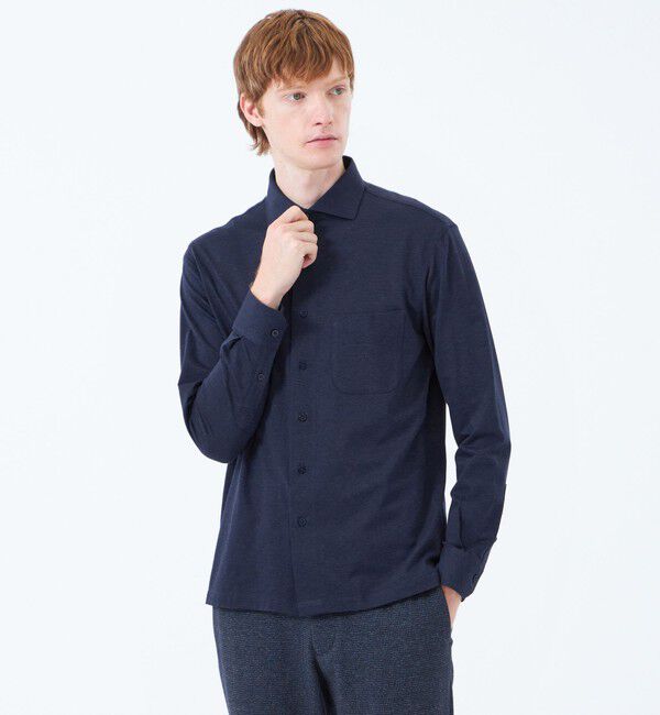 スクエアカットの裾が、様々なスタイルに合わせやすいジャージーシャツ【デザイン】あらゆるスタイルに合わせやすいホリゾンタルカラーで、裏前立て仕様、ステ.. |