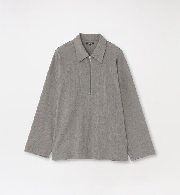 レイヤードにも使えるハーフジップシャツカラートップス【素材】ストレッチ性のある綿ポリエステル楊柳素材を使用。楊柳特有の凹凸感が肌離れを良くし、軽やか.. |