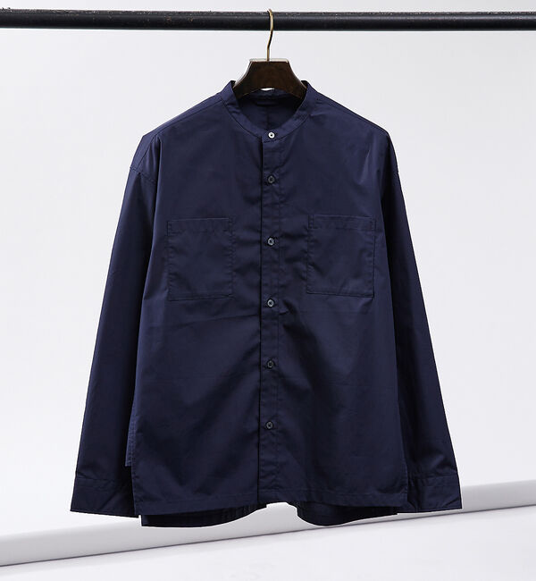 【アバハウス/ABAHOUSE】 【変形襟】定番/シャンブレーツイル カラーレス シャツ / バンドカラーシャツ