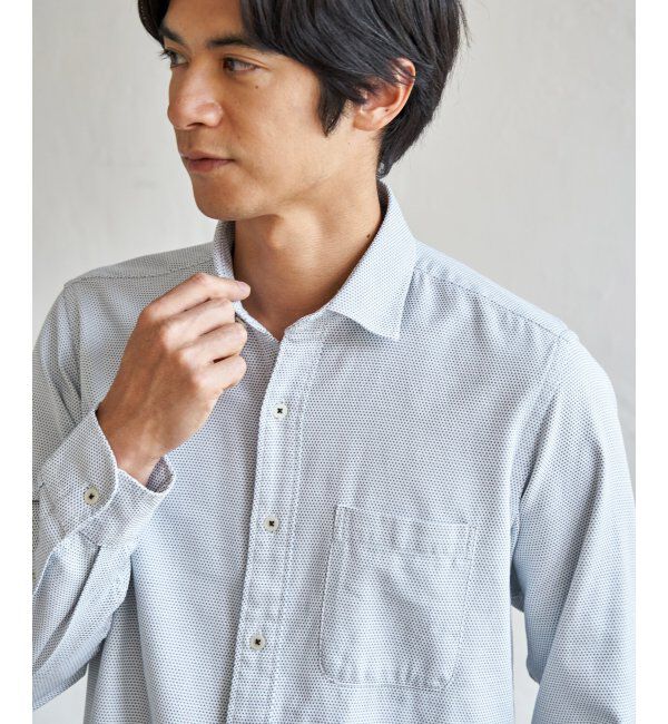 デニムを思わせる凹凸感と深みのある表情が特徴的な綿×ポリエステルのドビー素材を使用したシャツ。注目すべきは、スイスカラーと呼ばれる独自の襟デザイン。.. |