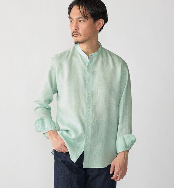 SHIPS DRESS ウォッシュド リネン バンドカラー ソリッド シャツ【素材特性】麻100%のシャツです。極細番手の80番単糸で織り上げ、糸番手から加工までこだわり.. |