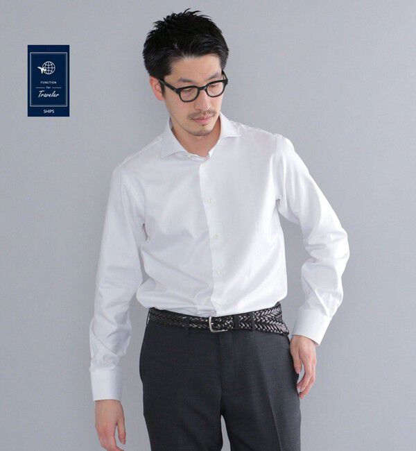 SHIPS DRESS イージーアイロンシャツシリーズ ヘリンボーン ホリゾンタルカラー シャツ--------------- FANCTION for TRAVELER ---------------◆EASY IRON ア.. |