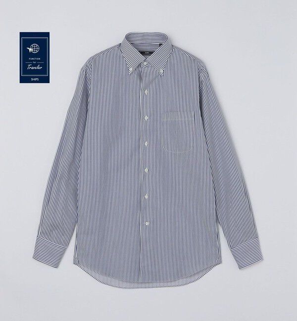 SHIPS DRESS イージーアイロンシャツシリーズ ロンドンストライプイタリアンカラー ボタンダウン シャツ--------------- FANCTION for TRAVELER -------------.. |