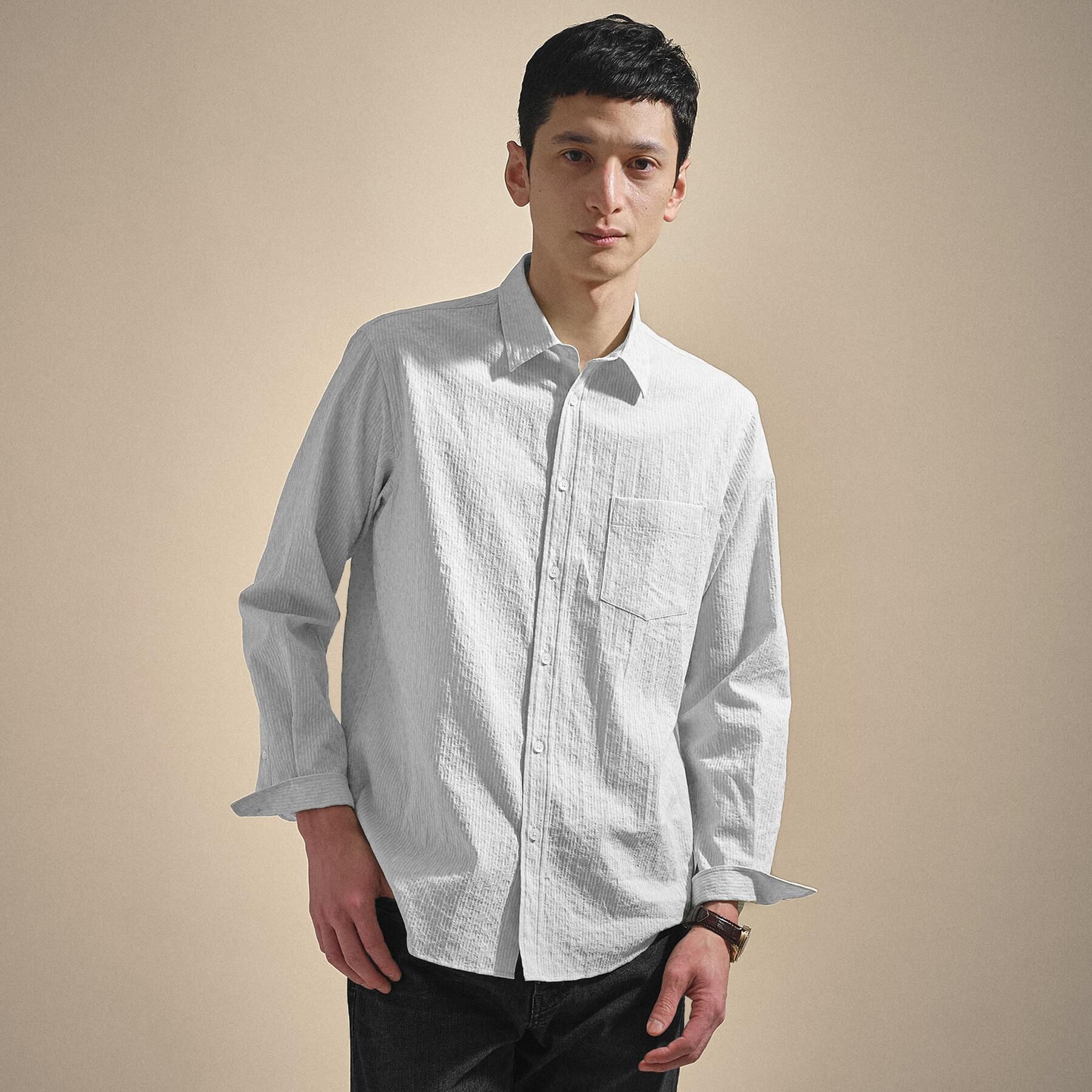 キレイな表面感が特徴のオックスストライプシャツ【デザインポイント】さらりとしたドライなタッチの中に、原料の持つつややかさと滑り心地を兼ねそろえたラグ.. |
