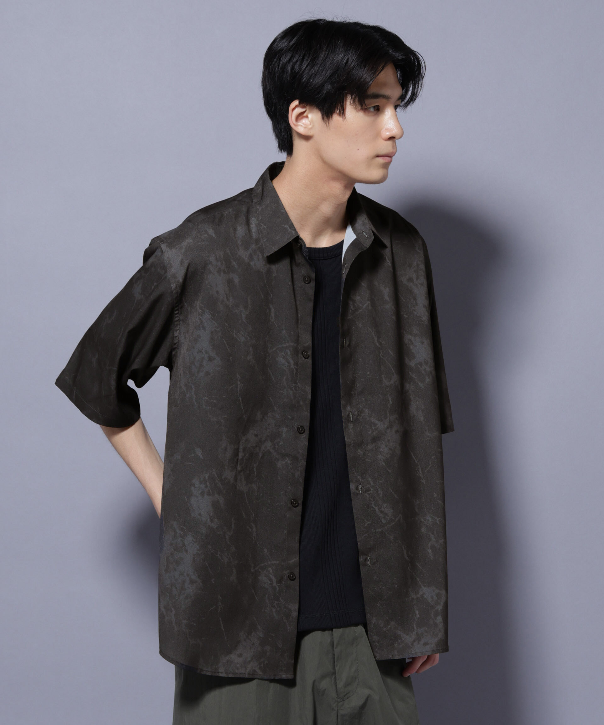 天然石の表面をイメージしたデザインシャツ【2026 SS】NANO universe(ナノ・ユニバース)◆夏のスタイルにアクセントをプラスする一着◆天然石の表面をイメージ.. |