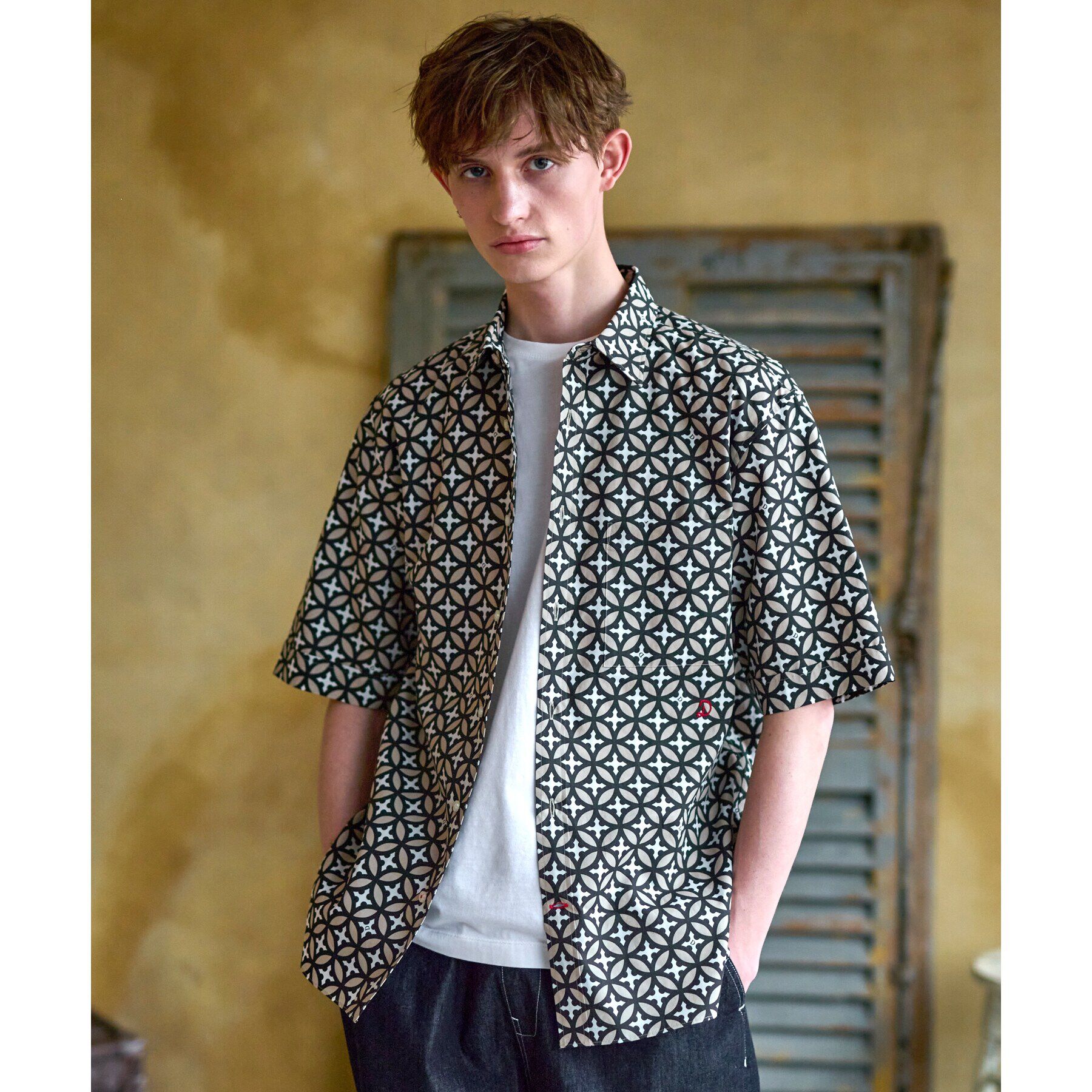 《品格溢れるショートスリーブシャツ。待望の追加生産決定!》リングを重ねたようなジオメトリックな図案に、ドレステリアのイニシャルを組み合わせたオリジナ.. |